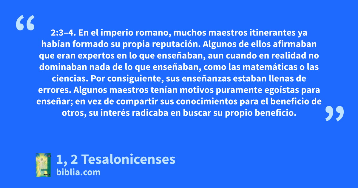 2:3–4. En el imperio romano, muchos maestros itinerantes ya habían formado su propia reputación. Algunos de ellos afirmaban que eran expertos en lo que enseñaban, aun cuando en realidad no dominaban nada de lo que enseñaban, como las matemáticas o las ciencias. Por consiguiente, sus enseñanzas estaban llenas de errores. Algunos maestros tenían motivos puramente egoístas para enseñar; en vez de compartir sus conocimientos para el beneficio de otros, su interés radicaba en buscar su propio beneficio.