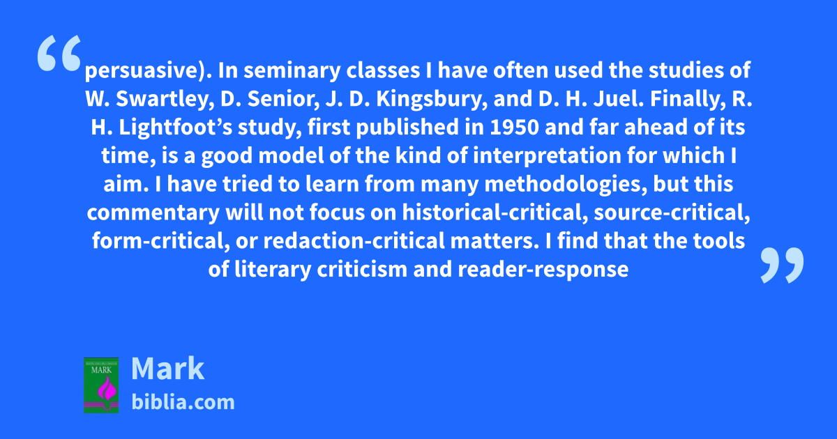 Timothy J. Geddert views Mark as a profound theologian and accomplished writer, not a mere compiler of traditions. Mark's text provokes careful reflection on its subtle and challenging message of hope and its call to follow Jesus "on the way." Mark's Gospel, with some riddles and puzzles, speaks of God as revealed in Jesus of Nazareth. This Jesus is "the Christ, the Son of God." Mark is about...