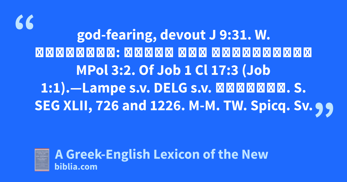 god-fearing, devout J 9:31. W. θεοφιλής: γένος τῶν Χριστιανῶν MPol 3:2. Of Job 1 Cl 17:3 (Job 1:1).—Lampe s.v. DELG s.v. σέβομαι. S. SEG XLII, 726 and 1226. M-M. TW. Spicq. Sv.