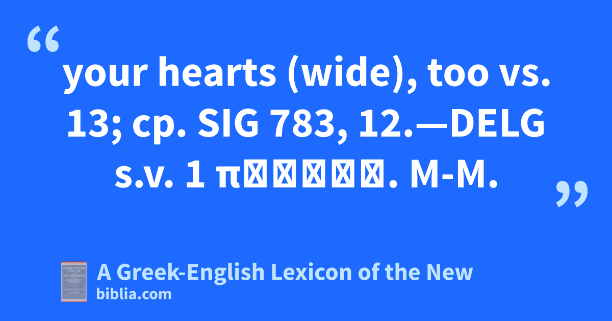 your hearts (wide), too vs. 13; cp. SIG 783, 12.—DELG s.v. 1 πλατύς. M-M.