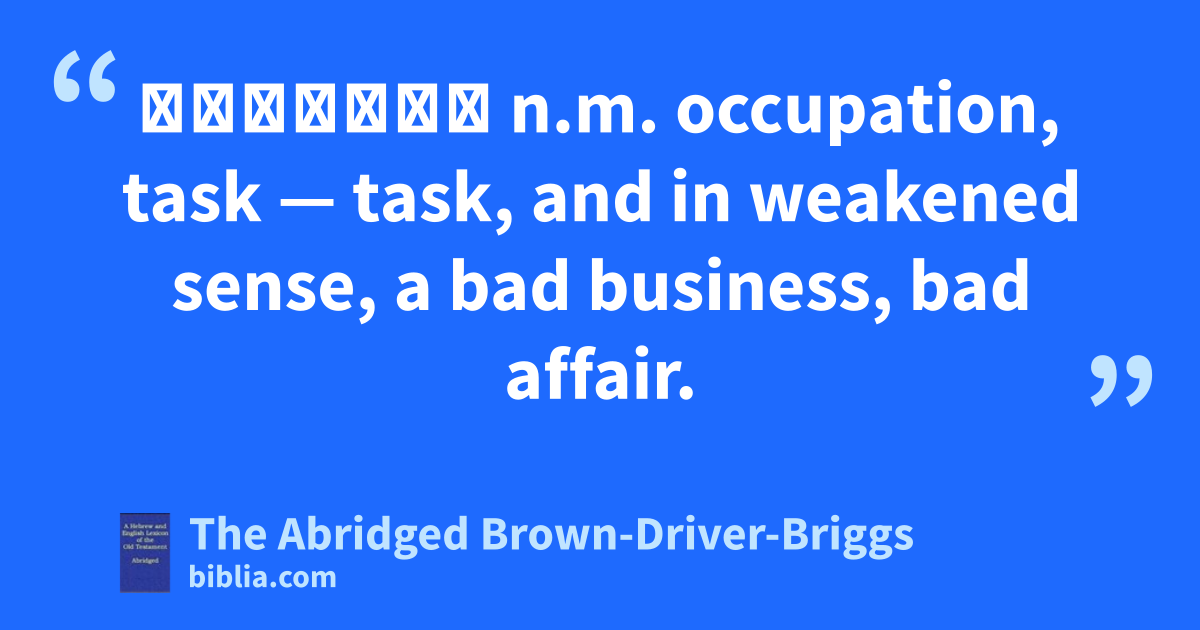עִנְיָן n.m. occupation, task — task, and in weakened sense, a bad business, bad affair.