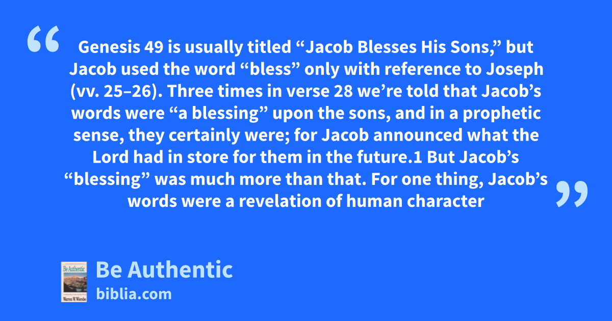Genesis 49 is usually titled “Jacob Blesses His Sons,” but Jacob used the word “bless” only with reference to Joseph (vv. 25–26). Three times in verse 28 we’re told that Jacob’s words were “a blessing” upon the sons, and in a prophetic sense, they certainly were; for Jacob announced what the Lord had in store for them in the future.1 But Jacob’s “blessing” was much more than that. For one thing, Jacob’s words were a revelation of human character