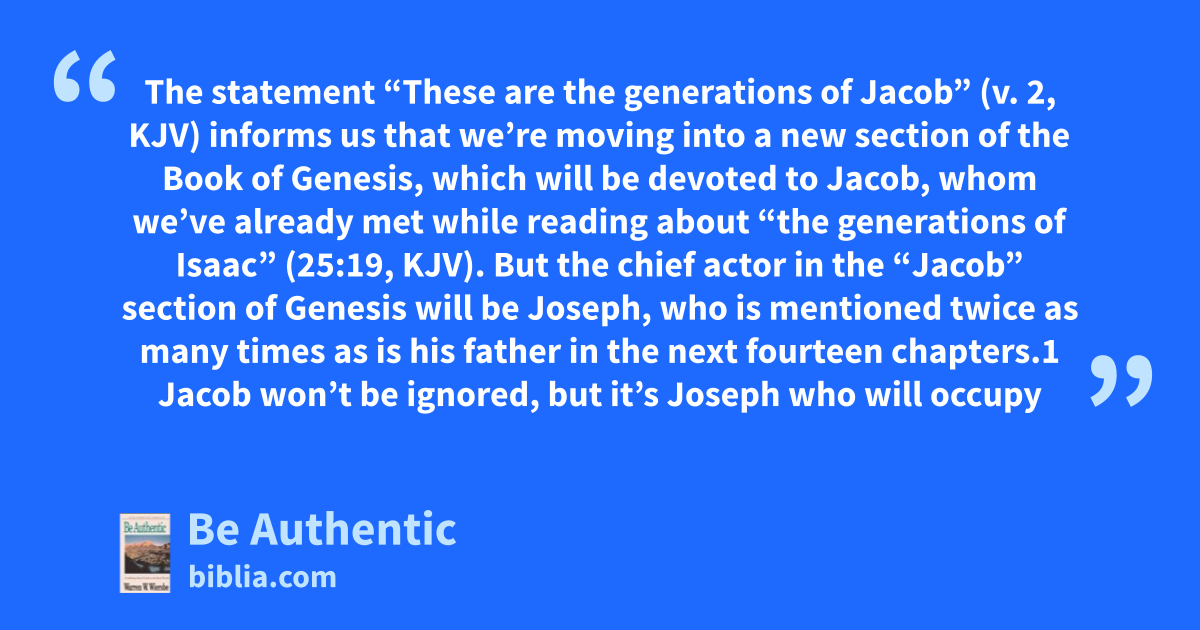 The statement “These are the generations of Jacob” (v. 2, KJV) informs us that we’re moving into a new section of the Book of Genesis, which will be devoted to Jacob, whom we’ve already met while reading about “the generations of Isaac” (25:19, KJV). But the chief actor in the “Jacob” section of Genesis will be Joseph, who is mentioned twice as many times as is his father in the next fourteen chapters.1 Jacob won’t be ignored, but it’s Joseph who will occupy