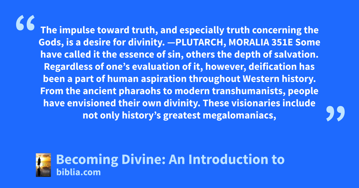 The impulse toward truth, and especially truth concerning the Gods, is a desire for divinity. —PLUTARCH, MORALIA 351E Some have called it the essence of sin, others the depth of salvation. Regardless of one’s evaluation of it, however, deification has been a part of human aspiration throughout Western history. From the ancient pharaohs to modern transhumanists, people have envisioned their own divinity. These visionaries include not only history’s greatest megalomaniacs,