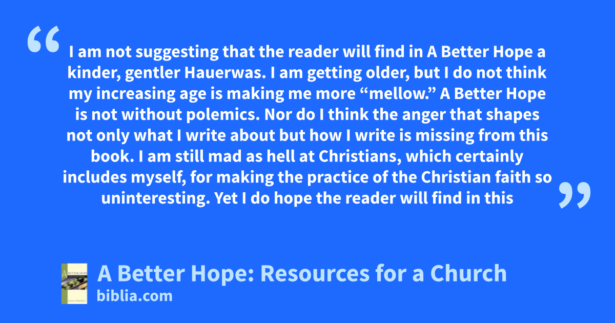 By his own admission, Stanley Hauerwas, never one to duck a good fight, has, in the past three decades, established himself as one of our most important and most disputatious theologians. With A Better Hope, he concentrates on the constructive case for the truth and power of the church and its faith, “since Christians cannot afford to let ourselves be defined by what we are against. Whatever or...