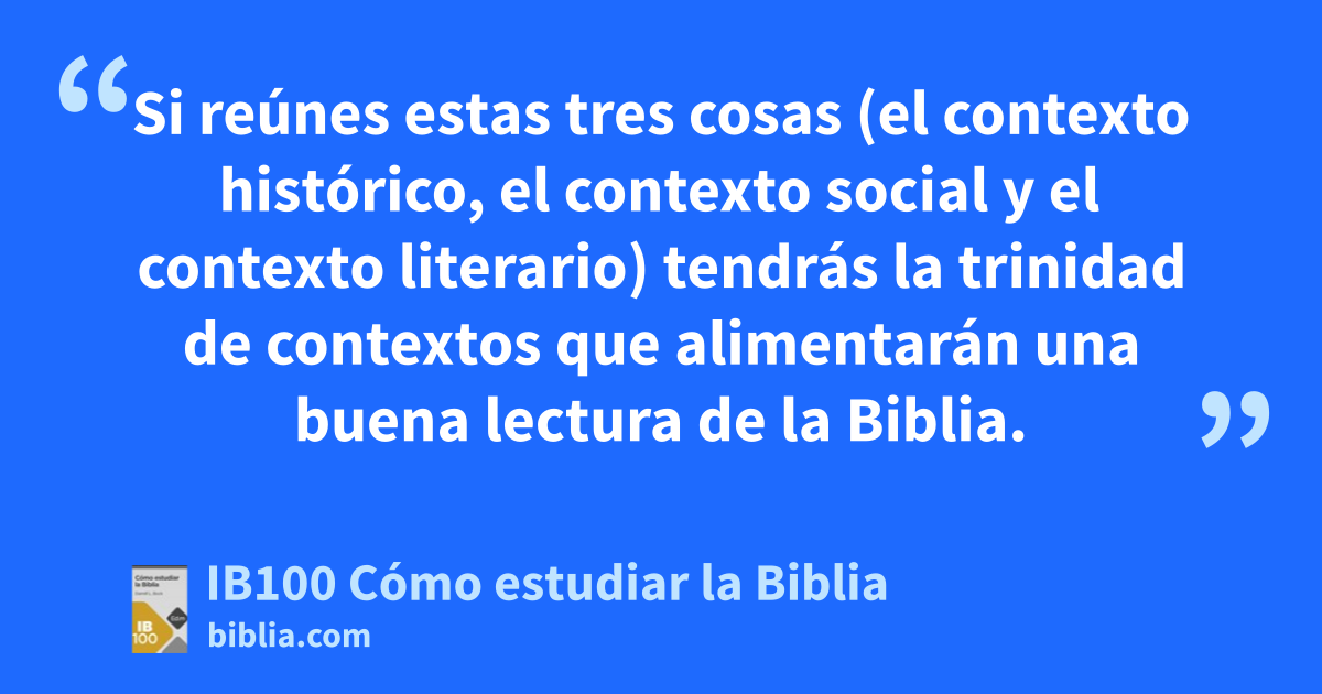 Si reúnes estas tres cosas (el contexto histórico, el contexto social y el contexto literario) tendrás la trinidad de contextos que alimentarán una buena lectura de la Biblia.