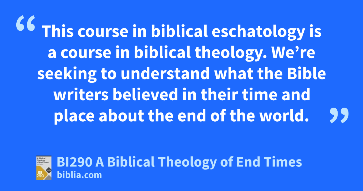 This course in biblical eschatology is a course in biblical theology. We’re seeking to understand what the Bible writers believed in their time and place about the end of the world.