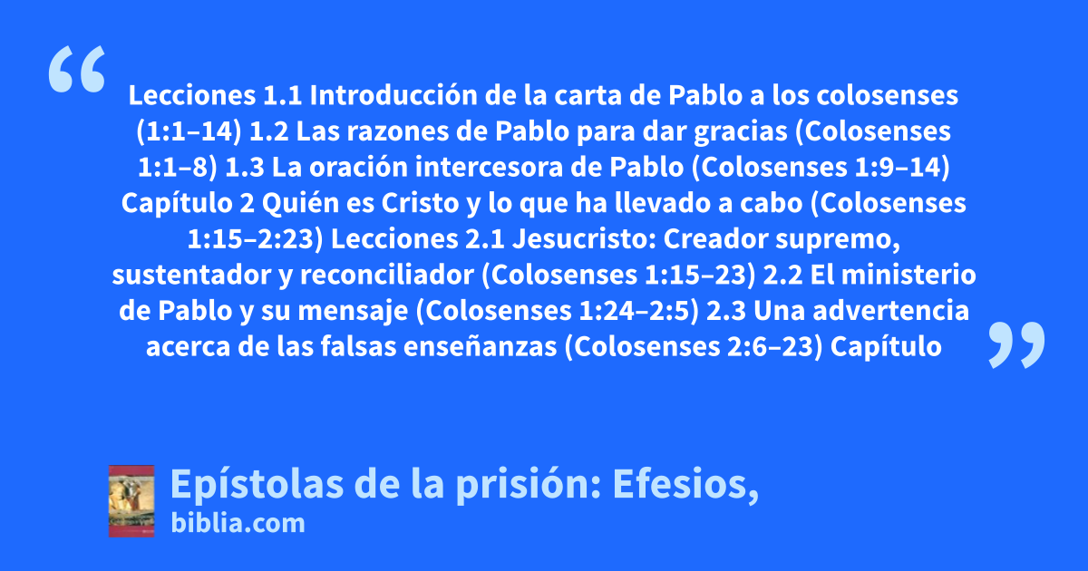 Un estudio práctico de los principios que Pablo escribió a las iglesias durante su encarcelamiento. Los conceptos son presentados en un lenguaje fácil de entender con explicaciones, ilustraciones, y aplicaciones que hacen que estos principios sean beneficiosos para los alumnos tanto en su vida personal como en sus ministerios.
