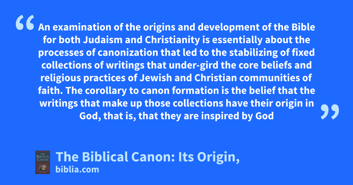 An examination of the origins and development of the Bible for both Judaism and Christianity is essentially about the processes of canonization that led to the stabilizing of fixed collections of writings that under-gird the core beliefs and religious practices of Jewish and Christian communities of faith. The corollary to canon formation is the belief that the writings that make up those collections have their origin in God, that is, that they are inspired by God