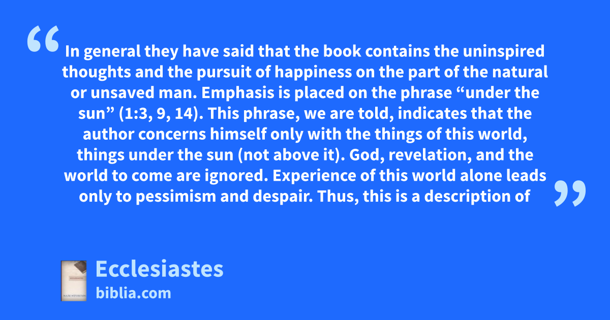 In this volume, Storms gives an introduction to the book of Ecclesiastes, commentary and discussion on key verses from the book, and a list of additional commentaries recommended by Storms.