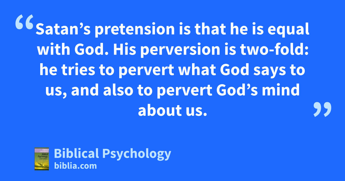 Satan’s pretension is that he is equal with God. His perversion is two-fold: he tries to pervert what God says to us, and also to pervert God’s mind about us.