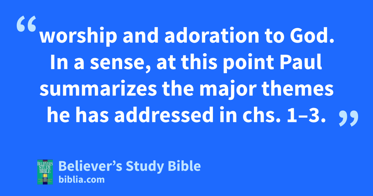 worship and adoration to God. In a sense, at this point Paul summarizes the major themes he has addressed in chs. 1–3.