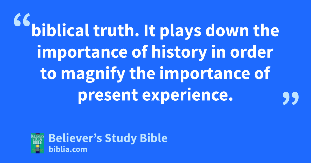 biblical truth. It plays down the importance of history in order to magnify the importance of present experience.