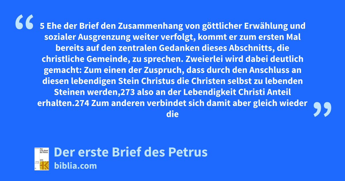 Thema des 1. Petrusbriefes ist das Selbstverständnis und Weltverhältnis der Christen, die in und an einer sie ablehnenden Gesellschaft leiden. Insofern ist er zunächst ein bedeutendes historisches Dokument für die Interaktion zwischen dem frühen Christentum und der hellenistisch-römischen Welt und Kultur. Zugleich ist dieser »Hirtenbrief«, der in origineller Weise biblische und außerbiblische...