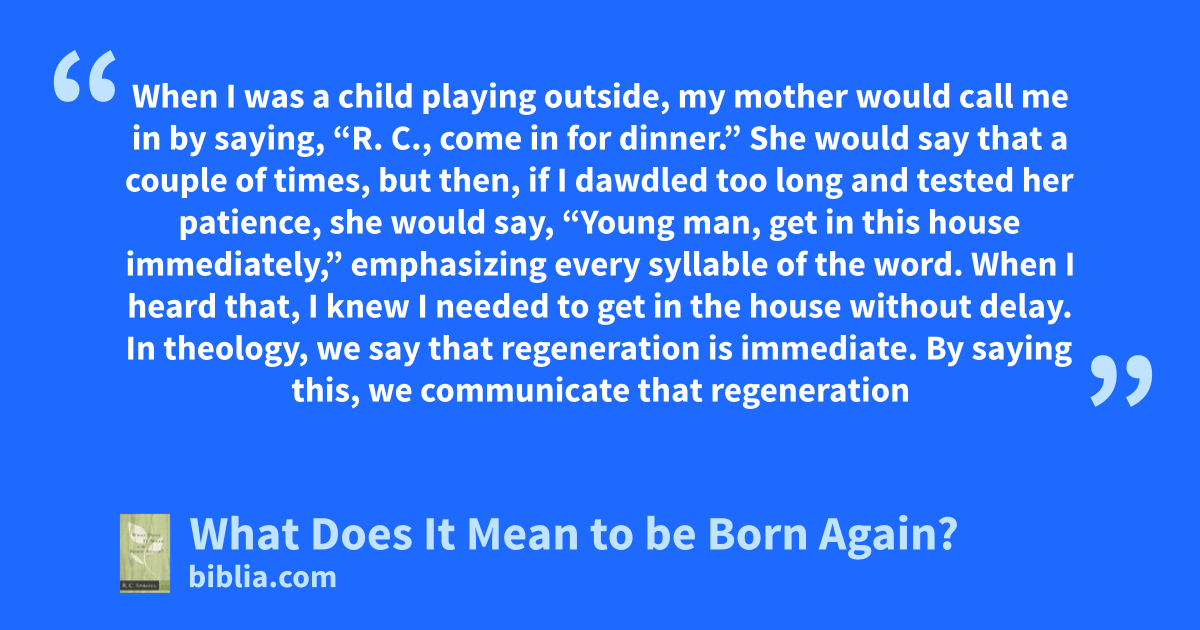 When I was a child playing outside, my mother would call me in by saying, “R. C., come in for dinner.” She would say that a couple of times, but then, if I dawdled too long and tested her patience, she would say, “Young man, get in this house immediately,” emphasizing every syllable of the word. When I heard that, I knew I needed to get in the house without delay. In theology, we say that regeneration is immediate. By saying this, we communicate that regeneration