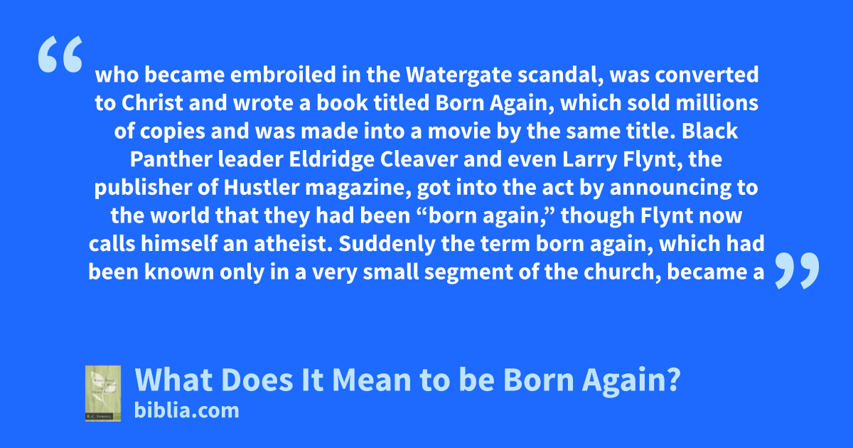 who became embroiled in the Watergate scandal, was converted to Christ and wrote a book titled Born Again, which sold millions of copies and was made into a movie by the same title. Black Panther leader Eldridge Cleaver and even Larry Flynt, the publisher of Hustler magazine, got into the act by announcing to the world that they had been “born again,” though Flynt now calls himself an atheist. Suddenly the term born again, which had been known only in a very small segment of the church, became a