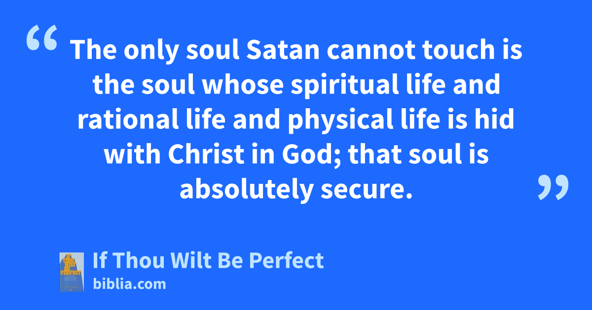 The only soul Satan cannot touch is the soul whose spiritual life and rational life and physical life is hid with Christ in God; that soul is absolutely secure.