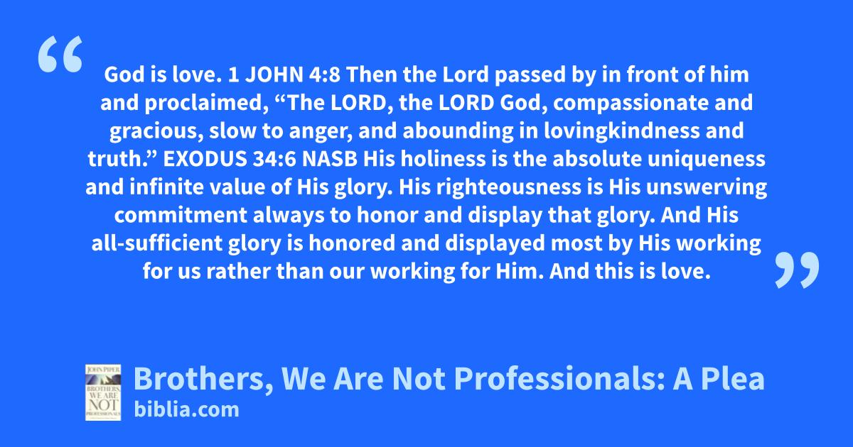 John Piper pleads with fellow pastors to abandon the secularization of the pastorate and pursue the prophetic call of the Bible for radical ministry. We pastors are being killed by the professionalizing of the pastoral ministry. The mentality of the professional is not the mentality of the prophet. It is not the mentality of the slave of Christ. Professionalism has nothing to do with the essence...