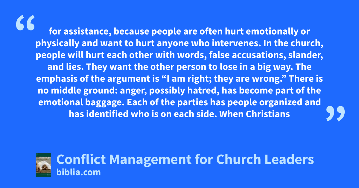 A biblical approach to conflict resolution. This course offers a scriptural way to deal with the inevitable occasions when conflict arises, particularly in a church setting. It offers practical principles for resolving the conflict in a manner that is pleasing to God.