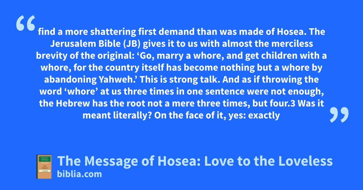 “Go and marry a prostitute.” These are the first words God spoke to his prophet Hosea. Why would he ask this of one of his spokesmen? Because he wanted to teach Hosea, the nation of Israel, and all of us today a lesson that we will not forget, a lesson that is painful yet joyous. Hosea’s somber portrait of the human condition is our lesson in pain. All of us have played the harlot by forsaking...