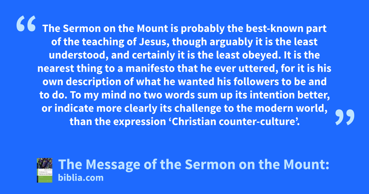 “The followers of Jesus are to be different,” writes John Stott, “different from both the nominal church and the secular world, different from both the religious and the irreligious. The Sermon on the Mount is the most complete delineation anywhere in the New Testament of the Christian counter-culture.” In the Sermon on the Mount, the “nearest thing to a manifesto” that Jesus ever uttered, we...