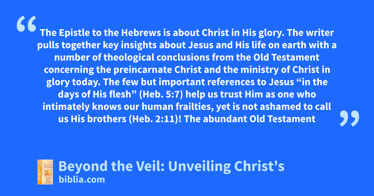 The Epistle to the Hebrews is about Christ in His glory. The writer pulls together key insights about Jesus and His life on earth with a number of theological conclusions from the Old Testament concerning the preincarnate Christ and the ministry of Christ in glory today. The few but important references to Jesus “in the days of His flesh” (Heb. 5:7) help us trust Him as one who intimately knows our human frailties, yet is not ashamed to call us His brothers (Heb. 2:11)! The abundant Old Testament