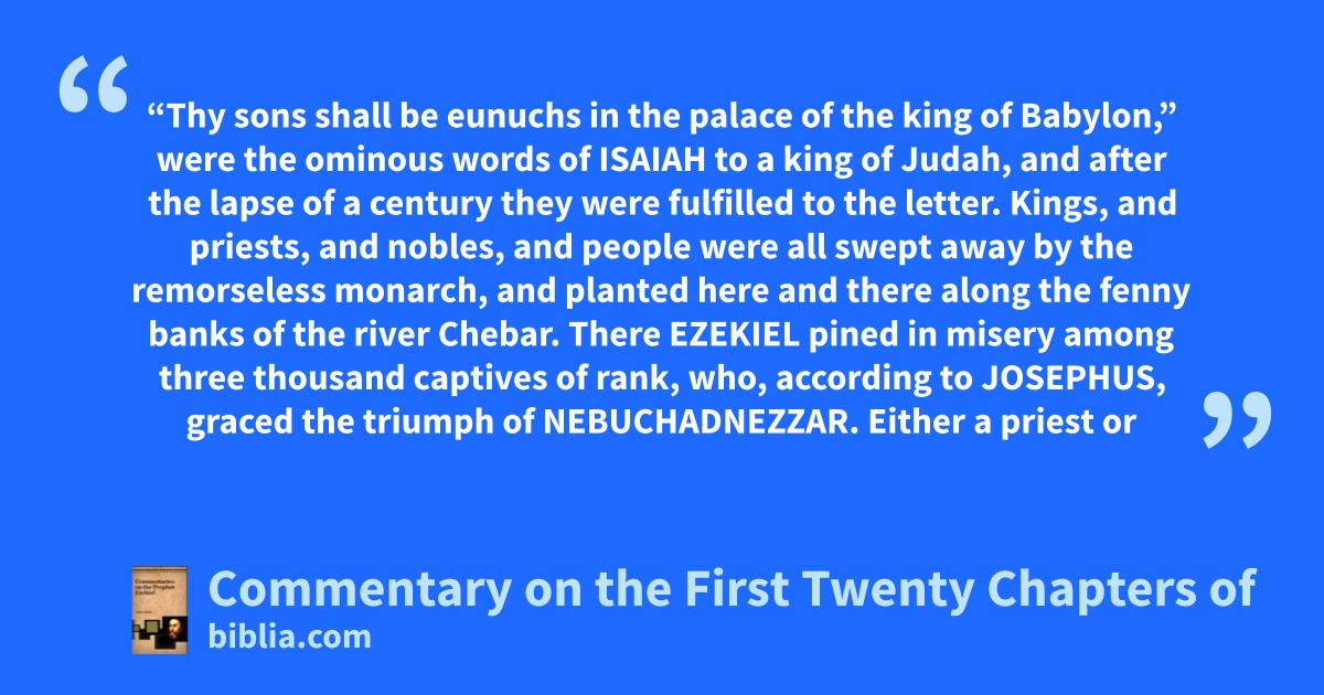 “Thy sons shall be eunuchs in the palace of the king of Babylon,” were the ominous words of ISAIAH to a king of Judah, and after the lapse of a century they were fulfilled to the letter. Kings, and priests, and nobles, and people were all swept away by the remorseless monarch, and planted here and there along the fenny banks of the river Chebar. There EZEKIEL pined in misery among three thousand captives of rank, who, according to JOSEPHUS, graced the triumph of NEBUCHADNEZZAR. Either a priest or