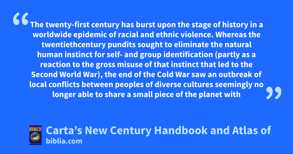 The twenty-first century has burst upon the stage of history in a worldwide epidemic of racial and ethnic violence. Whereas the twentiethcentury pundits sought to eliminate the natural human instinct for self- and group identification (partly as a reaction to the gross misuse of that instinct that led to the Second World War), the end of the Cold War saw an outbreak of local conflicts between peoples of diverse cultures seemingly no longer able to share a small piece of the planet with