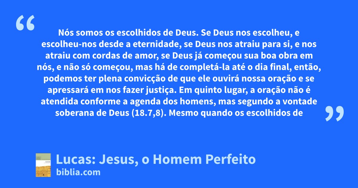 Nós somos os escolhidos de Deus. Se Deus nos escolheu, e escolheu-nos desde a eternidade, se Deus nos atraiu para si, e nos atraiu com cordas de amor, se Deus já começou sua boa obra em nós, e não só começou, mas há de completá-la até o dia final, então, podemos ter plena convicção de que ele ouvirá nossa oração e se apressará em nos fazer justiça. Em quinto lugar, a oração não é atendida conforme a agenda dos homens, mas segundo a vontade soberana de Deus (18.7,8). Mesmo quando os escolhidos de