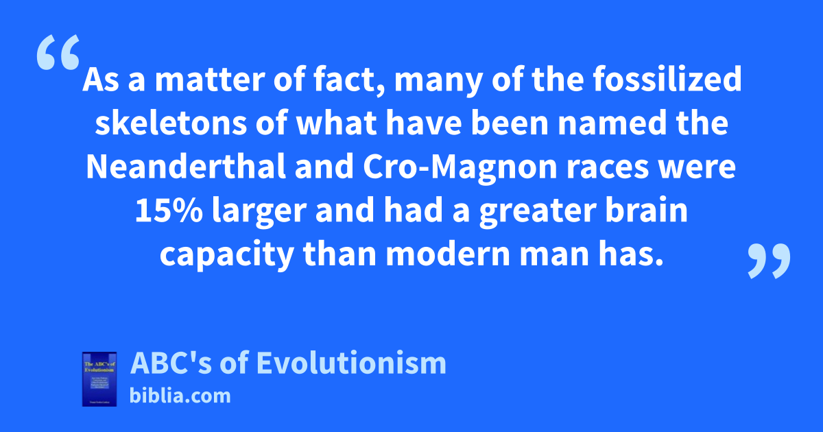 As a matter of fact, many of the fossilized skeletons of what have been named the Neanderthal and Cro-Magnon races were 15% larger and had a greater brain capacity than modern man has.