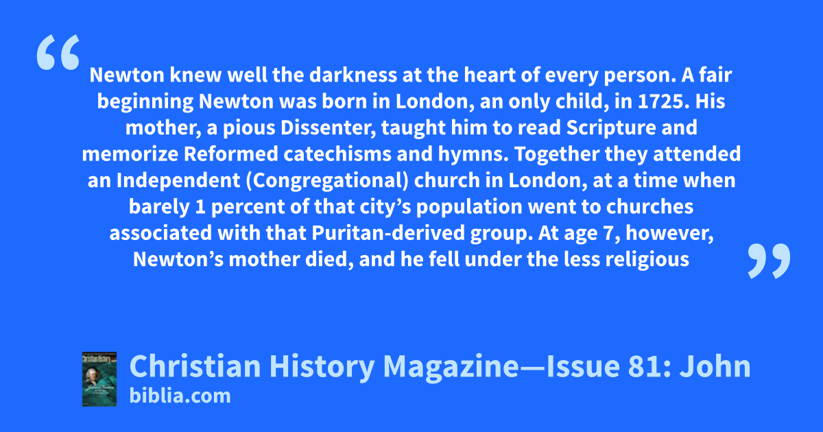After years of running, searching, and falling, amazing grace finally caught up with John Newton. Leaving the lucrative slave-trade behind, he devoted his life to ministering to the lowly, the overlooked, and the ordinary in his Olney parish, and he was both friend and mentor to a young William Wilberforce—the man who would end the greatest oppression in England. This issue of Christian History...