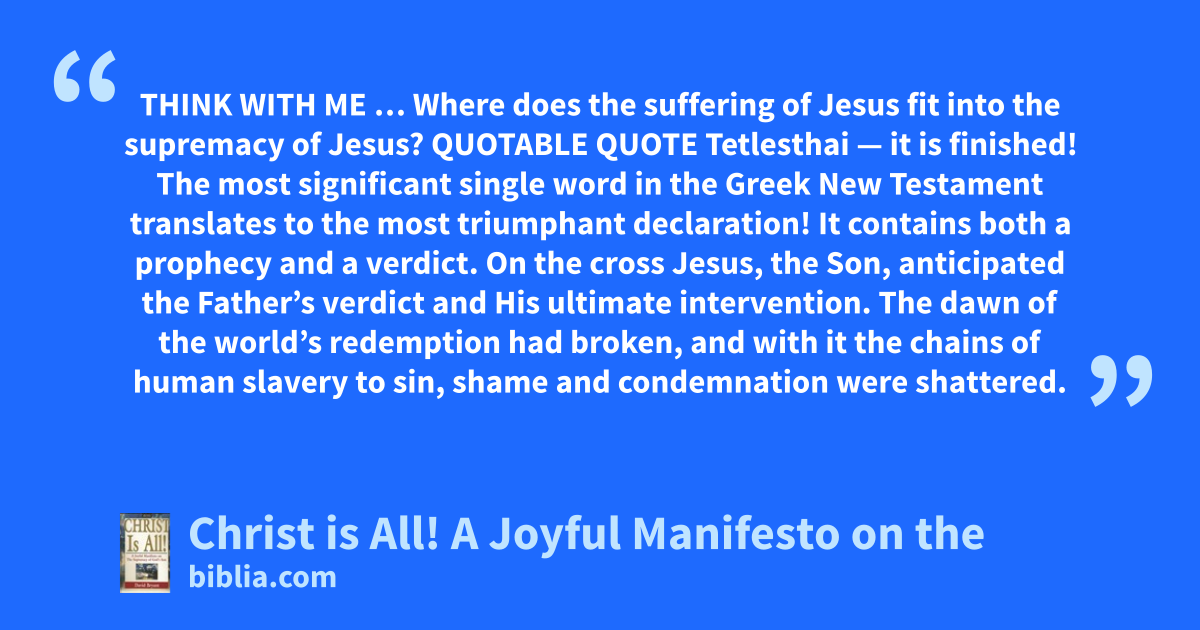 This joyful manifesto of Christ’s supremacy offers three books in one volume. In Volume One David Bryant develops a dynamic vision of what the supremacy of God’s Son really means. Here the author explores a biblical overview of the full extent of Christ’s supremacy. Volume Two reflects on the crisis of supremacy that is afflicting the Church and Christians today with an increasing loss of hope...