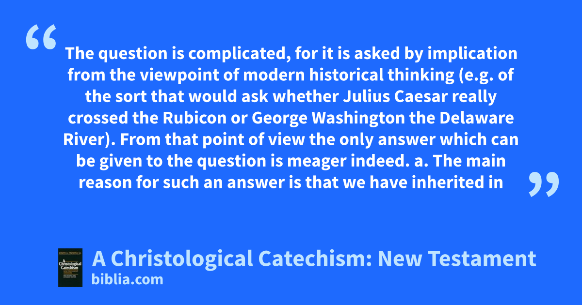 The question is complicated, for it is asked by implication from the viewpoint of modern historical thinking (e.g. of the sort that would ask whether Julius Caesar really crossed the Rubicon or George Washington the Delaware River). From that point of view the only answer which can be given to the question is meager indeed. a. The main reason for such an answer is that we have inherited in