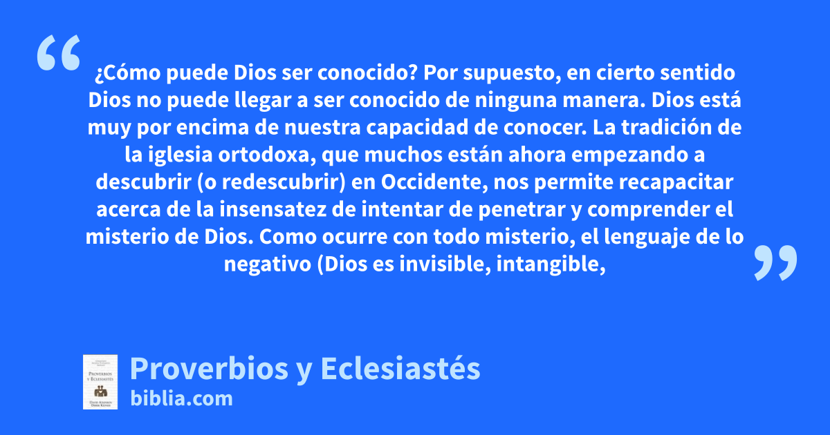 ¿Cómo puede Dios ser conocido? Por supuesto, en cierto sentido Dios no puede llegar a ser conocido de ninguna manera. Dios está muy por encima de nuestra capacidad de conocer. La tradición de la iglesia ortodoxa, que muchos están ahora empezando a descubrir (o redescubrir) en Occidente, nos permite recapacitar acerca de la insensatez de intentar de penetrar y comprender el misterio de Dios. Como ocurre con todo misterio, el lenguaje de lo negativo (Dios es invisible, intangible,