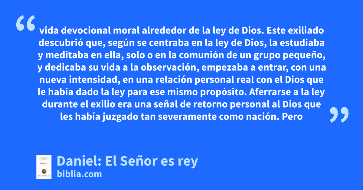 vida devocional moral alrededor de la ley de Dios. Este exiliado descubrió que, según se centraba en la ley de Dios, la estudiaba y meditaba en ella, solo o en la comunión de un grupo pequeño, y dedicaba su vida a la observación, empezaba a entrar, con una nueva intensidad, en una relación personal real con el Dios que le había dado la ley para ese mismo propósito. Aferrarse a la ley durante el exilio era una señal de retorno personal al Dios que les había juzgado tan severamente como nación. Pero