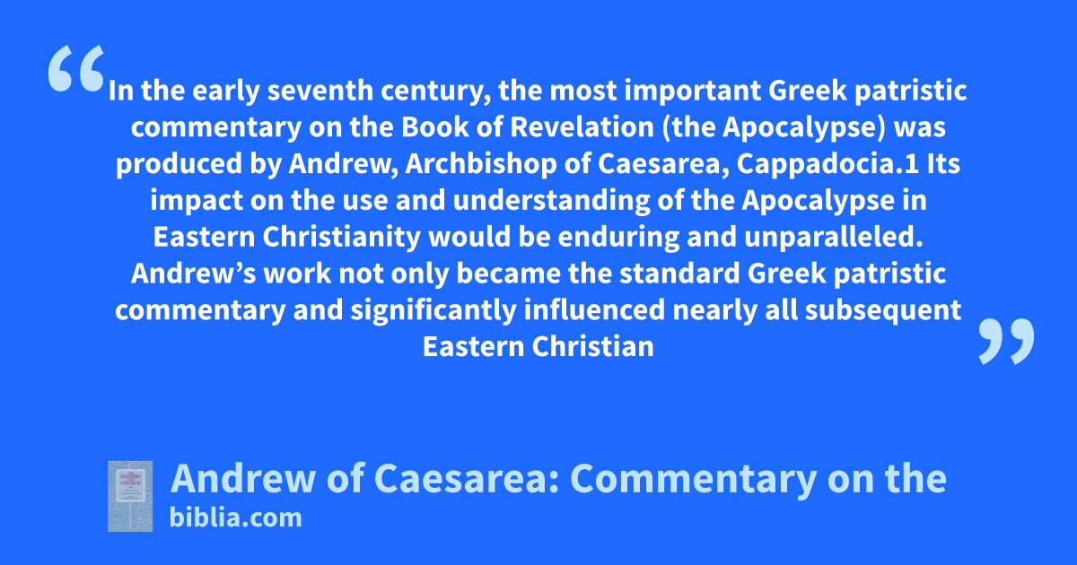 In the early seventh century, the most important Greek patristic commentary on the Book of Revelation (the Apocalypse) was produced by Andrew, Archbishop of Caesarea, Cappadocia.1 Its impact on the use and understanding of the Apocalypse in Eastern Christianity would be enduring and unparalleled. Andrew’s work not only became the standard Greek patristic commentary and significantly influenced nearly all subsequent Eastern Christian