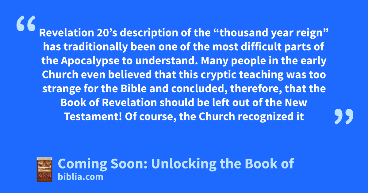 Revelation 20’s description of the “thousand year reign” has traditionally been one of the most difficult parts of the Apocalypse to understand. Many people in the early Church even believed that this cryptic teaching was too strange for the Bible and concluded, therefore, that the Book of Revelation should be left out of the New Testament! Of course, the Church recognized it