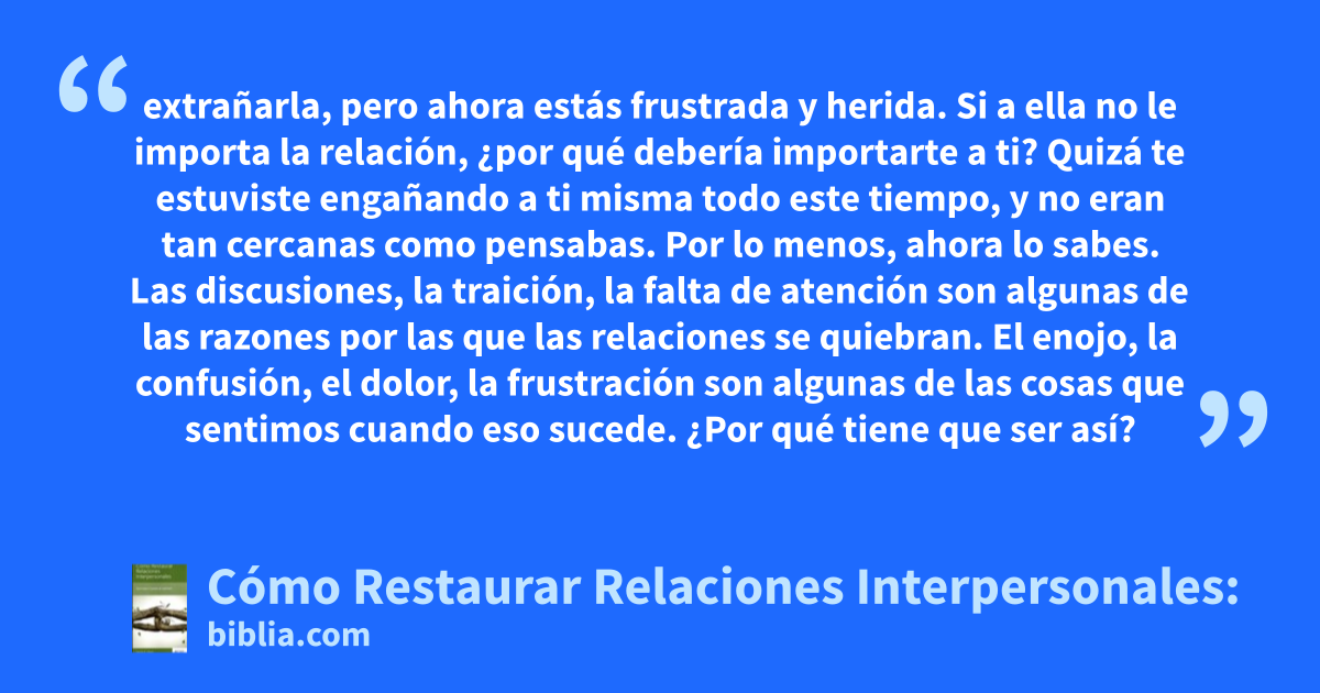 Discusiones, traición, falta de atención son algunas de las razones por las que las relaciones interpersonales se rompen. Enojo, confusión, dolor, frustración son algunas de las cosas que sentimos cuando una relación se quiebra. Todos hemos experimentado lo difíciles que pueden ser las relaciones interpersonales en este mundo caído. La experimentada consejera Jayne Clark descifra los problemas...