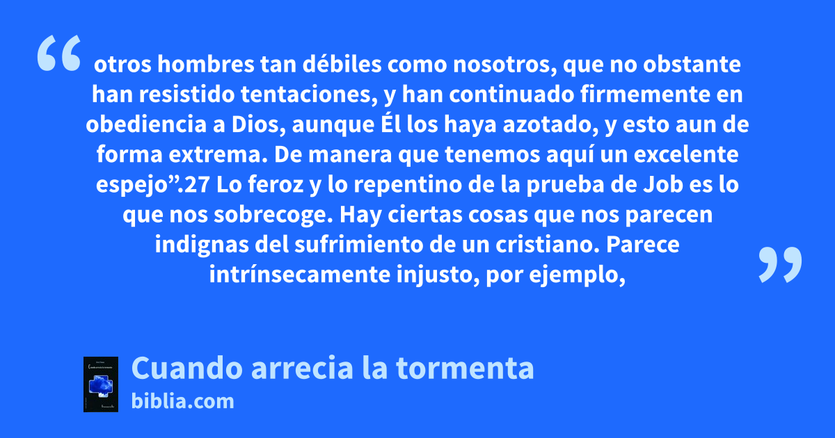 El libro de Job es la conmovedora historia de un hombre cuya vida cambió dramáticamente en el curso de unos pocos días. Está relacionado con el problema del sufrimiento, y la respuesta al problema no se ve en los comentarios de los consejeros de Job, sino, principalmente, en su respuesta al sufrimiento. El libro de Job nos enseña como responder a las dificultades en nuestras vidas.