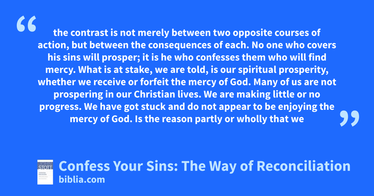 the contrast is not merely between two opposite courses of action, but between the consequences of each. No one who covers his sins will prosper; it is he who confesses them who will find mercy. What is at stake, we are told, is our spiritual prosperity, whether we receive or forfeit the mercy of God. Many of us are not prospering in our Christian lives. We are making little or no progress. We have got stuck and do not appear to be enjoying the mercy of God. Is the reason partly or wholly that we