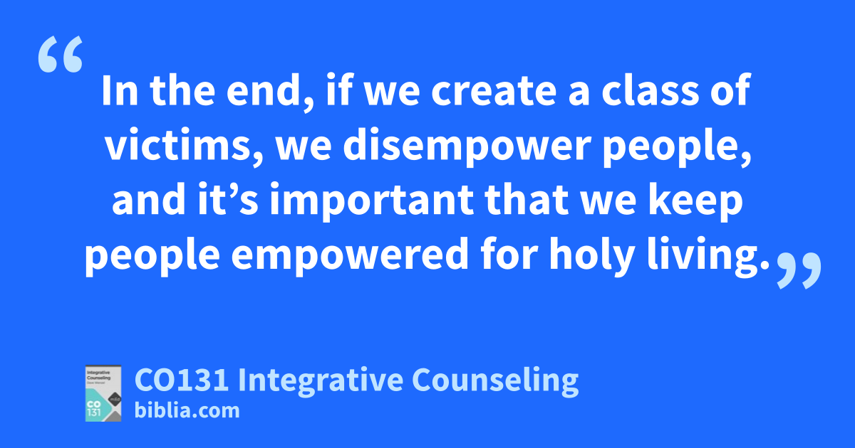 In the end, if we create a class of victims, we disempower people, and it’s important that we keep people empowered for holy living.