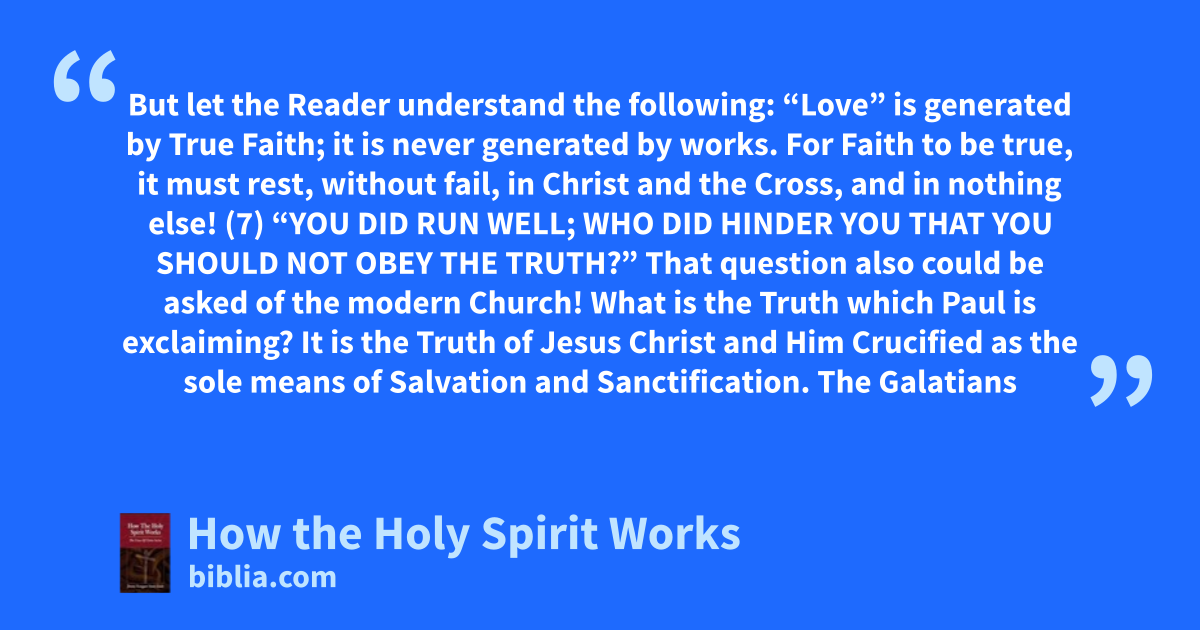 But let the Reader understand the following: “Love” is generated by True Faith; it is never generated by works. For Faith to be true, it must rest, without fail, in Christ and the Cross, and in nothing else! (7) “YOU DID RUN WELL; WHO DID HINDER YOU THAT YOU SHOULD NOT OBEY THE TRUTH?” That question also could be asked of the modern Church! What is the Truth which Paul is exclaiming? It is the Truth of Jesus Christ and Him Crucified as the sole means of Salvation and Sanctification. The Galatians