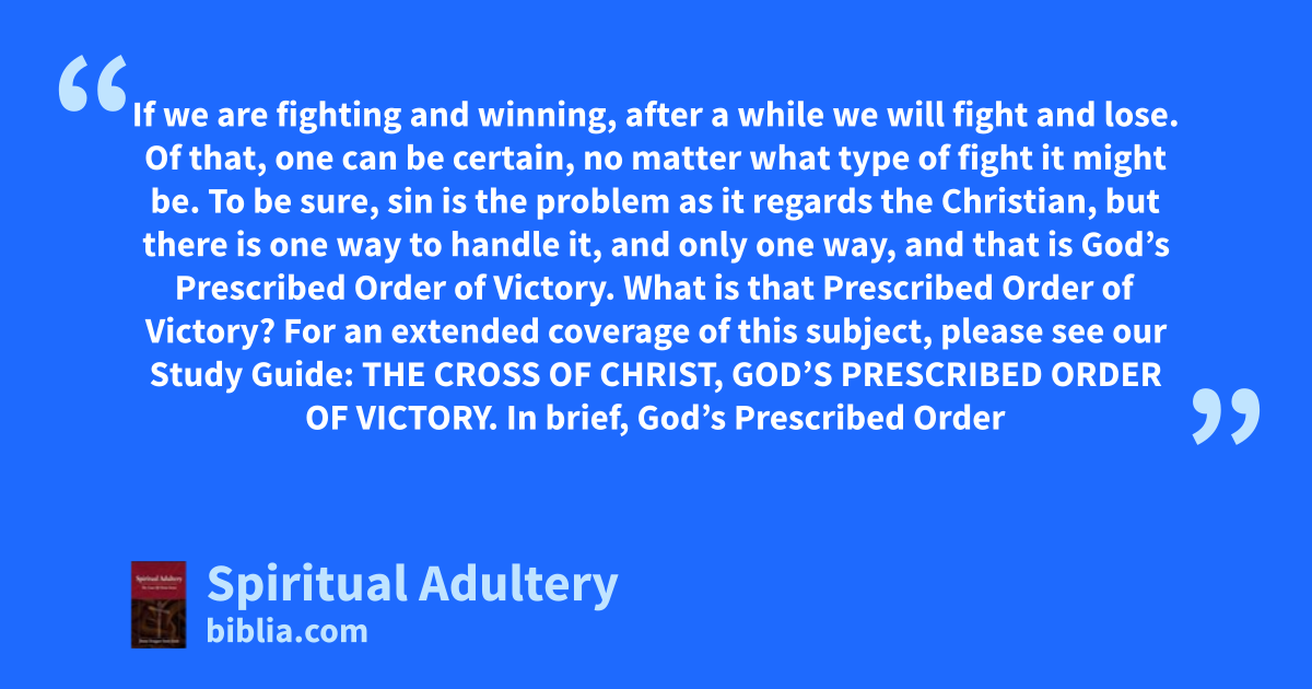 If we are fighting and winning, after a while we will fight and lose. Of that, one can be certain, no matter what type of fight it might be. To be sure, sin is the problem as it regards the Christian, but there is one way to handle it, and only one way, and that is God’s Prescribed Order of Victory. What is that Prescribed Order of Victory? For an extended coverage of this subject, please see our Study Guide: THE CROSS OF CHRIST, GOD’S PRESCRIBED ORDER OF VICTORY. In brief, God’s Prescribed Order