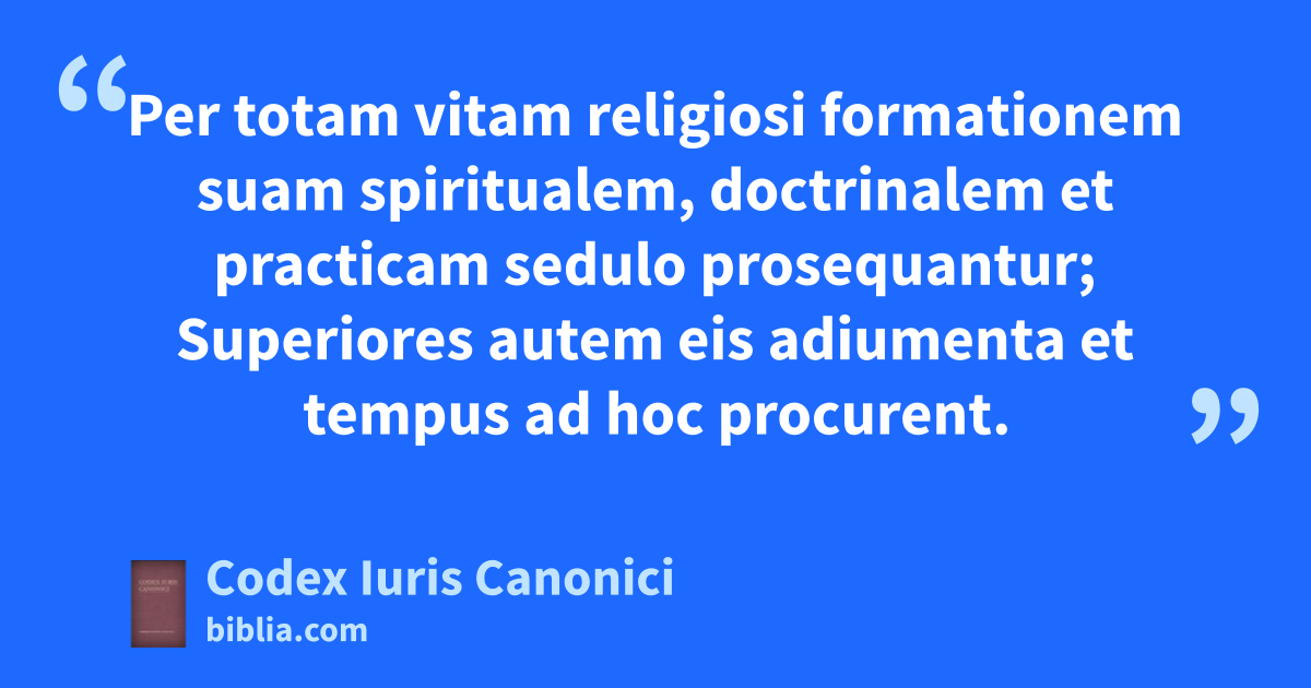 Per totam vitam religiosi formationem suam spiritualem, doctrinalem et practicam sedulo prosequantur; Superiores autem eis adiumenta et tempus ad hoc procurent.