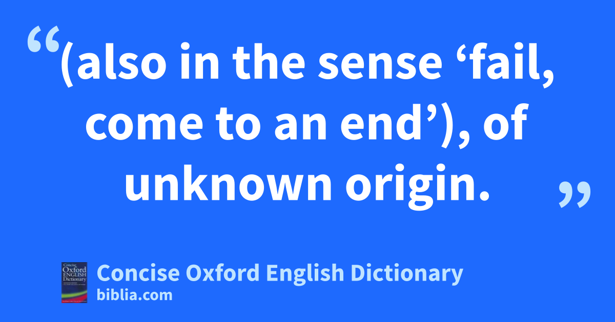 (also in the sense ‘fail, come to an end’), of unknown origin.