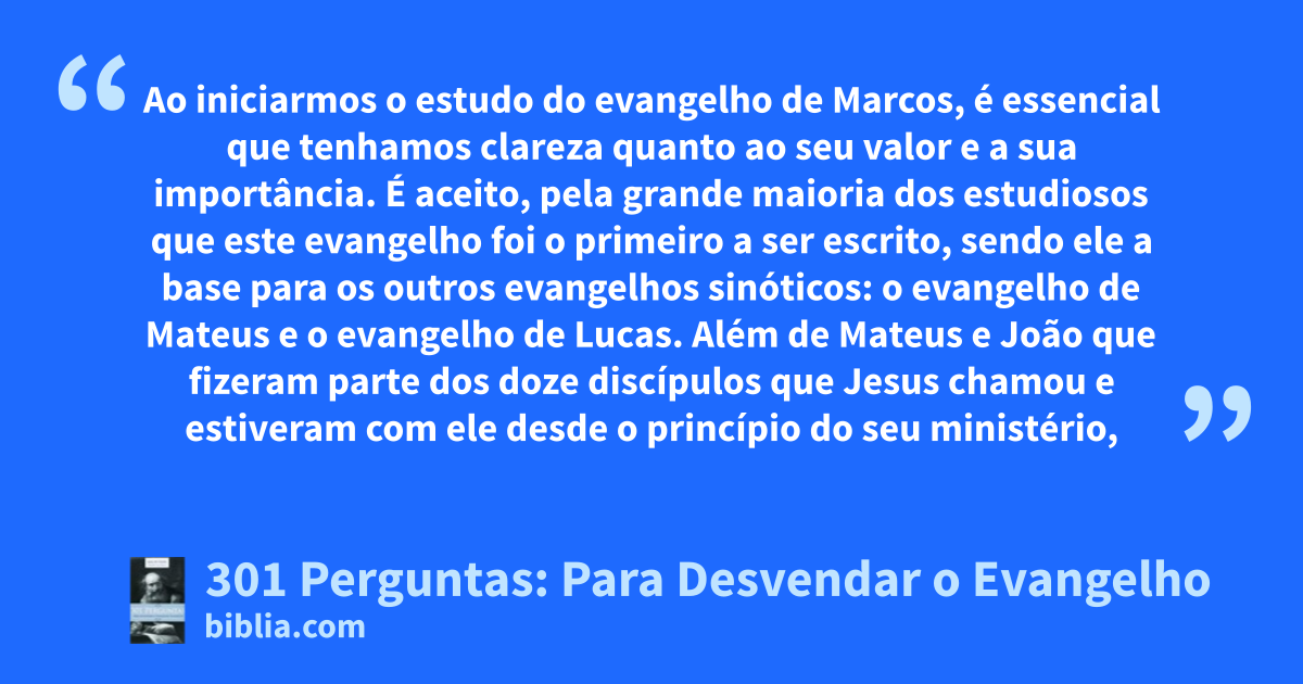 Ao iniciarmos o estudo do evangelho de Marcos, é essencial que tenhamos clareza quanto ao seu valor e a sua importância.