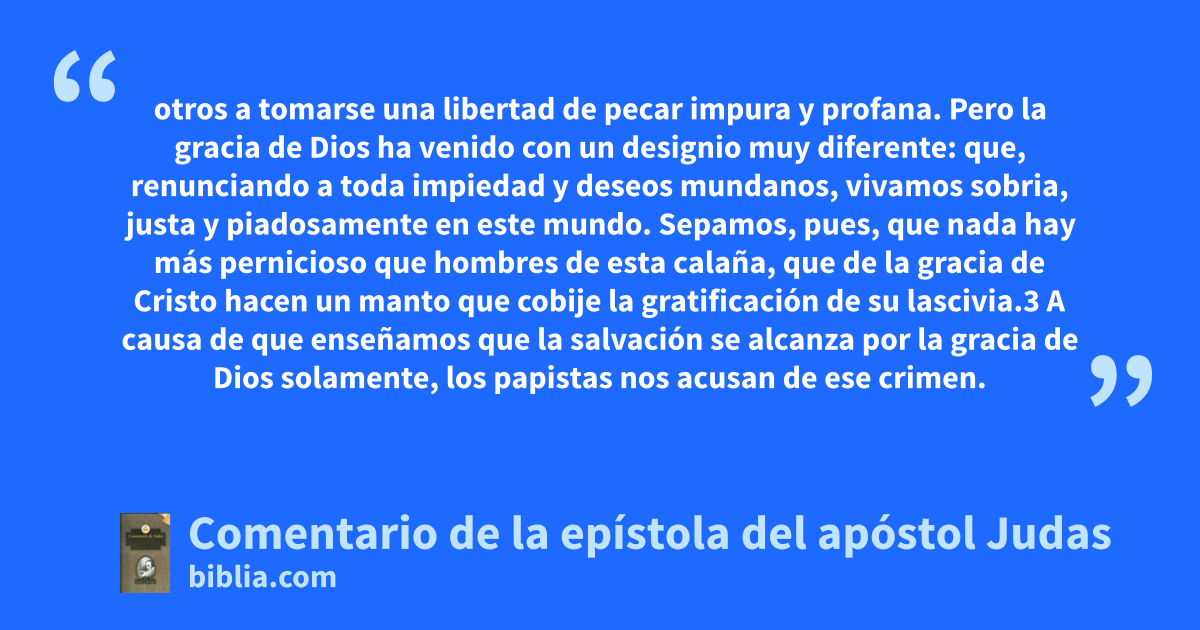 Comentario de Judas Este comentario sobre Judas trata varios temas de especial importancia para la iglesia de hoy. Falsos apóstoles, falsos hermanos, mercaderes en el templo de Dios: así de vigente son las denuncias de esta corta epístola comentada magistralmente por Juan Calvino.