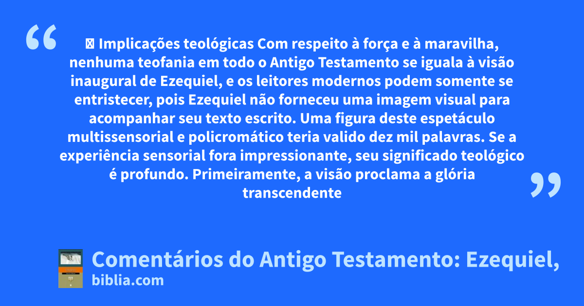 Volume 1 - Capítulos 1 a 24 - “Este estudo enciclopédico da primeira parte do livro de Ezequiel mistura a melhor pesquisa exegética de todos os espectros do mundo erudito. Se você quer saber tudo o que sabemos sobre a vida, o tempo, e as palavras de Ezequiel, este é o livro.” (Lawrence Boadt - Washington Theological Union). Volume 2 - Capítulos 25 a 48 - “Block considera como tarefa principal a...