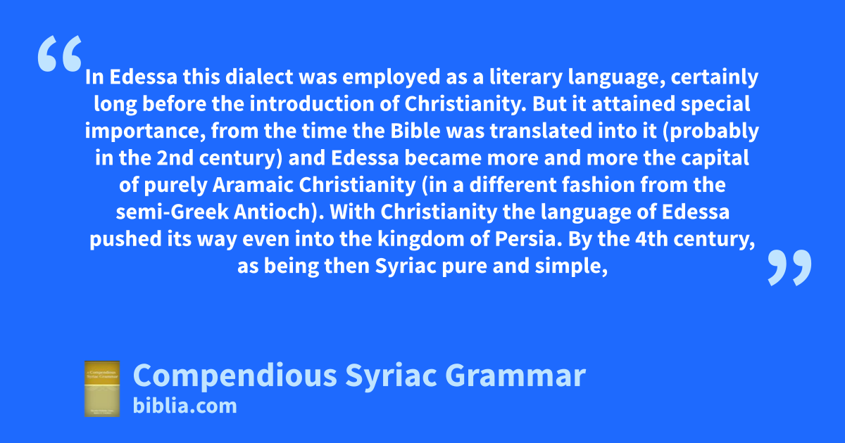 This is the most complete reference grammar of Syriac in the English language. It is cited hundreds of times by various Hebrew reference grammars already available from Logos, making it a useful tool for comparative Semitics as well as studying the Syriac Bible and Syriac Church Fathers.