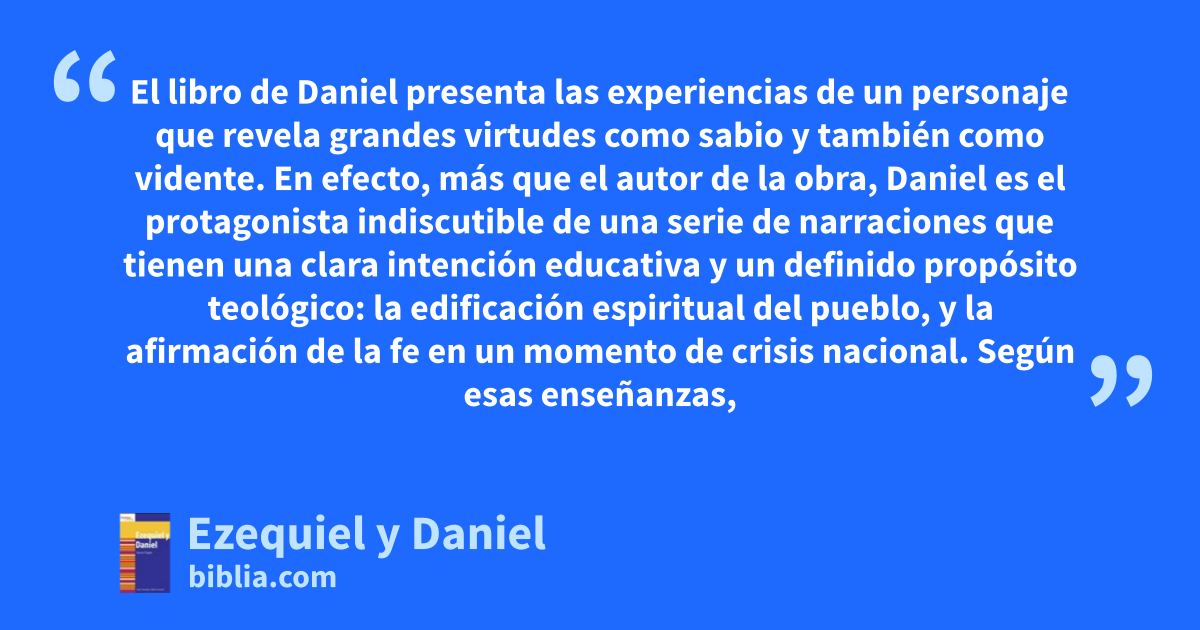 El libro de Daniel presenta las experiencias de un personaje que revela grandes virtudes como sabio y también como vidente. En efecto, más que el autor de la obra, Daniel es el protagonista indiscutible de una serie de narraciones que tienen una clara intención educativa y un definido propósito teológico: la edificación espiritual del pueblo, y la afirmación de la fe en un momento de crisis nacional. Según esas enseñanzas,